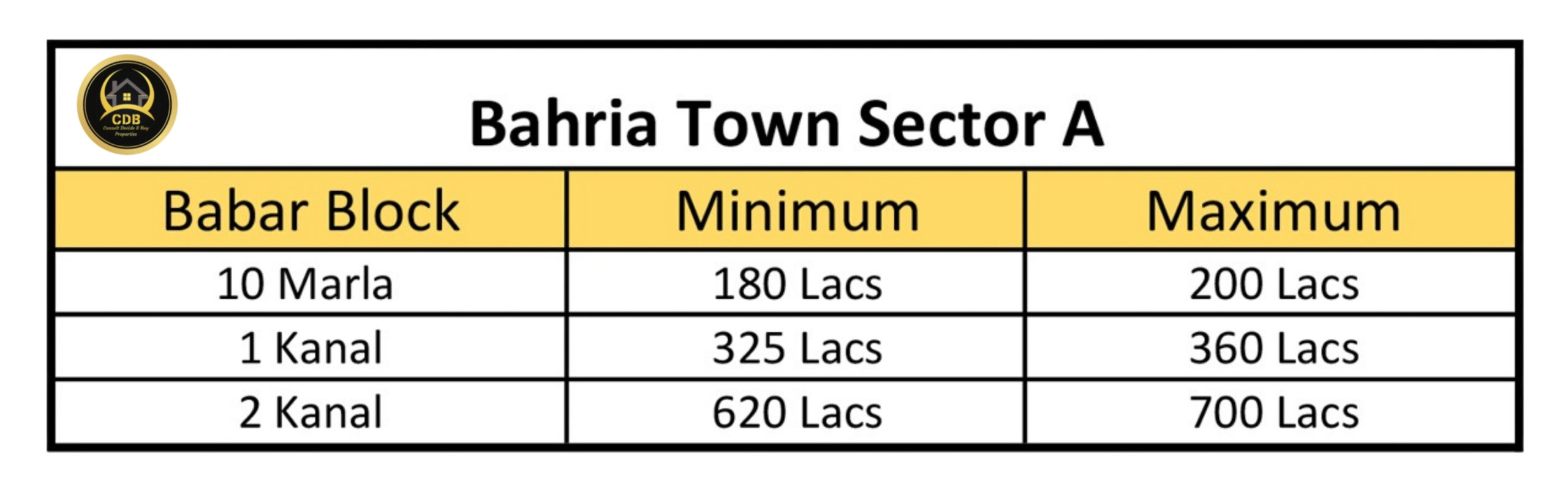 Explore the property rates and prices in Bahria Town Sector A, known for its upscale residential and commercial developments